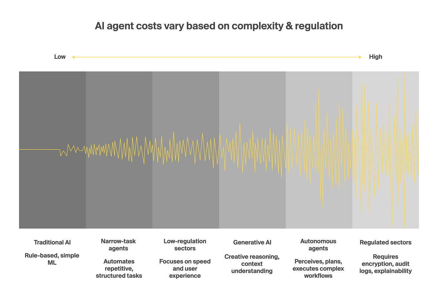 The value of AI brokers additionally relies on their complexity, which scales non-linearly. Adding one other characteristic to your agent’s scope might not double however triple its value as a result of the clever assistant now must determine which characteristic to make use of to carry out particular duties.